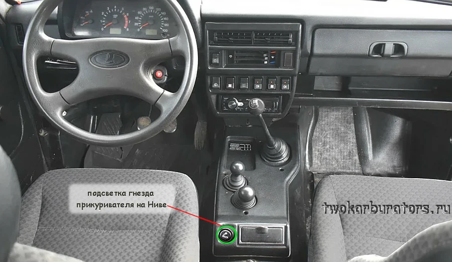 Прикуриватель, установленный на автомобиле Нива 21213, 21214 и пр., оборудован подсветкой (так называемой подсветкой гнезда прикуривателя).