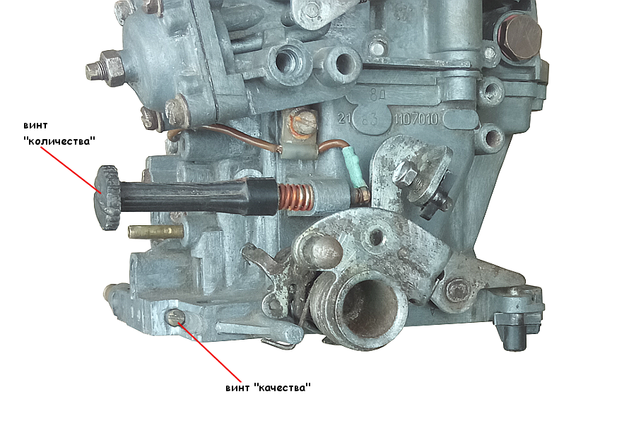 Карбюраторы семейства Озон 2105, 2107 оборудованы винтом регулирующим состав топливной смеси (винт «качества») и винтом регулирующим объем топливной смеси, поступающий через систему холостого хода на ХХ двигателя (винт «количества»).