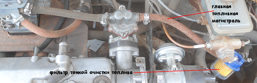 Топливная система засоряется продуктами окисления ее элементов, мусором в бензине, отложениями от присадок. В первую очередь забиваются топливные фильтры (на топливозаборнике в бензобаке, фильтр тонкой очистки топлива, фильтр в бензонасосе). Подача топлива в запущенных случаях прекращается вовсе, в не особо запущенных сокращается в большей или меньшей степени. Уровень топлива в поплавковой камере падает ниже нормы, топливная смесь обедняется. Приходится долго крутить стартером коленчатый вал двигателя чтобы заполнить поплавковую камеру и подать бензин в двигатель.