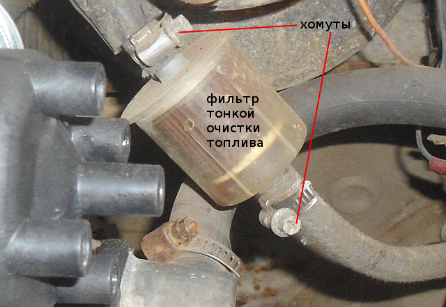 Фильтров в топливной системе двигателя 21083 несколько: фильтр на топливозаборнике в бензобаке, фильтр тонкой очистки топлива до бензонасоса, фильтр в бензонасосе, фильтр на входе в карбюратор.