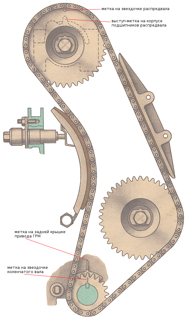 Установочные метки привода ГРМ двигателей автомобилей ВАЗ 2108, 2109, 21099