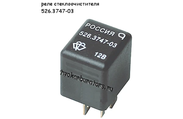 В электрической цепи стеклоочистителя, для снижения нагрузки на контакты, а так же для обеспечения прерывистого режима и работы на малой скорости установлено электронное реле (реле К3 в монтажном блоке предохранителей). Это реле типа 52.3747 или 525.3747. Оно обеспечивает включение электродвигателя с частотой 14±4 цикла в минуту при частоте вращения вала мотор-редуктора не менее 20-¹, при температуре 20±5 и напряжении в бортовой сети 14±0,2В. См. «Реле очистителя ветрового стекла автомобиля ВАЗ 2113, 2114, 2115».