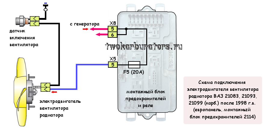 Схема подключения электродвигателя на автомобилях с монтажным блоком 2114.