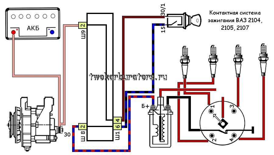 - Схема бесконтактной системы зажигания ВАЗ 2104, 2105, 2107