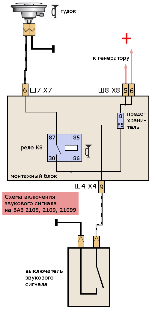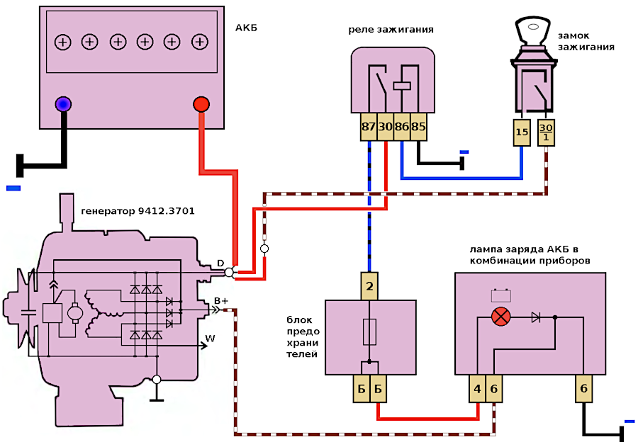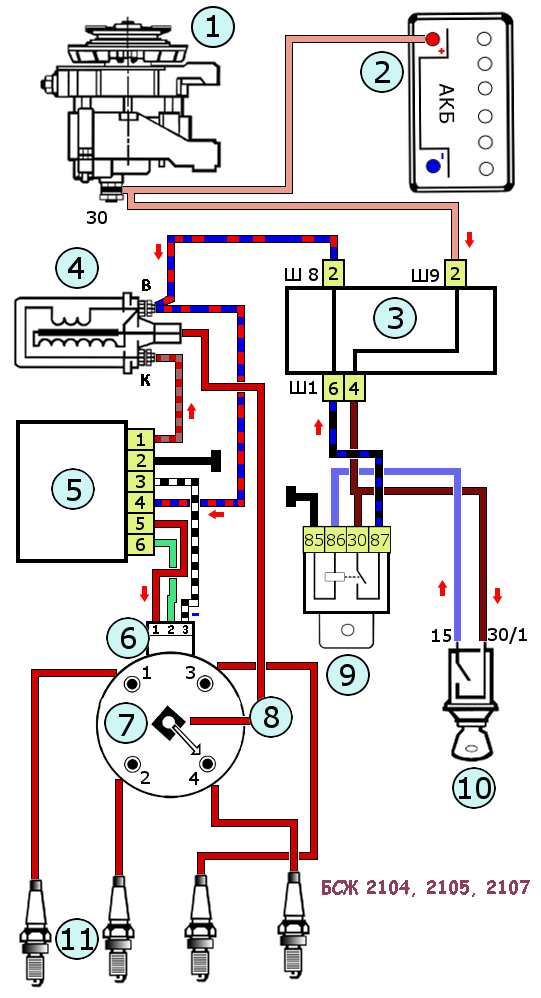 Схема подключения стартер 5712.3708 автомобилей ВАЗ 21083, 21093, 21099
