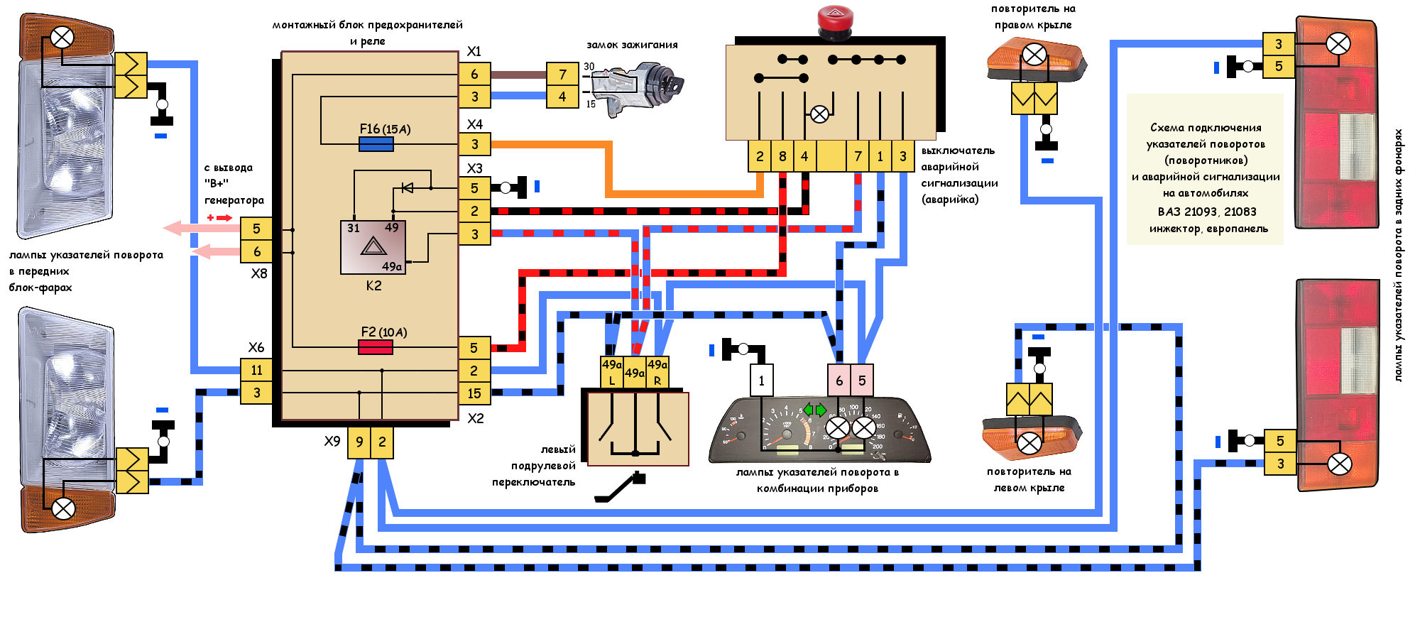 Следующее изображение Ukazateli-povorota-21093-schema Указатели поворота автомобиля ВАЗ 21093 инжектор Указатели поворота (поворотники) автомобиля ВАЗ 21093, 21083 инжектор, европанель, схема подключения
