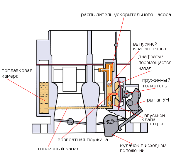 Предыдущее изображение Следующее изображение image1315 Ускорительный насос карбюратора Солекс, схема Солекс рабочий ход ускорительного насоса карбюратора Солекс 21073