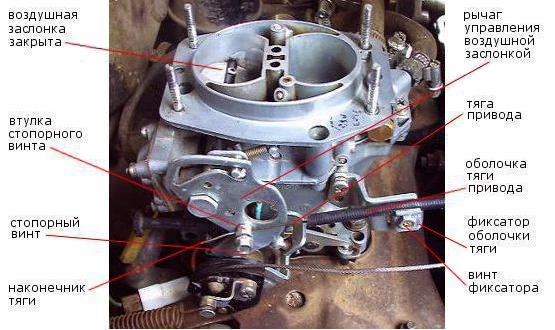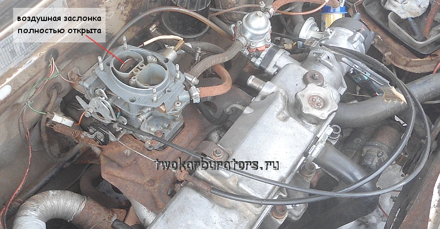Для уверенного запуска двигателя и последующей его нормальной работы необходима правильная регулировка привода воздушной заслонки карбюратора («подсоса»). При ее неверной регулировке, например, из-за того, что воздушная заслонка полностью не закрывается двигатель автомобиля может не запуститься вовсе .