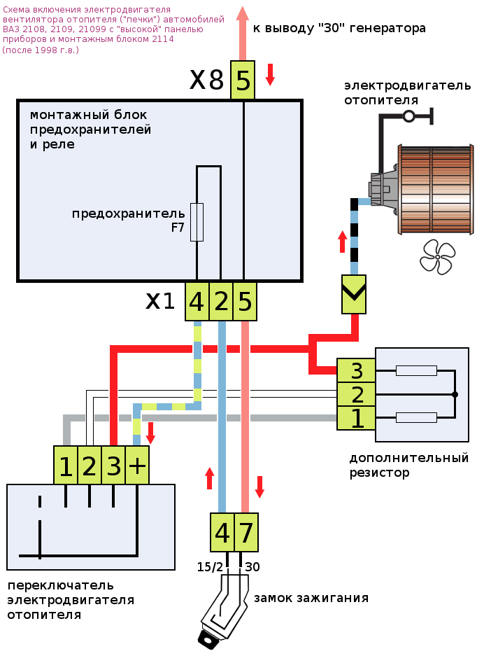 Следующее изображение image875 схема включения печки 2108, 2109, 21099 с низкой панелью схема включения печки 2108, 2109, 21099 с низкой панелью