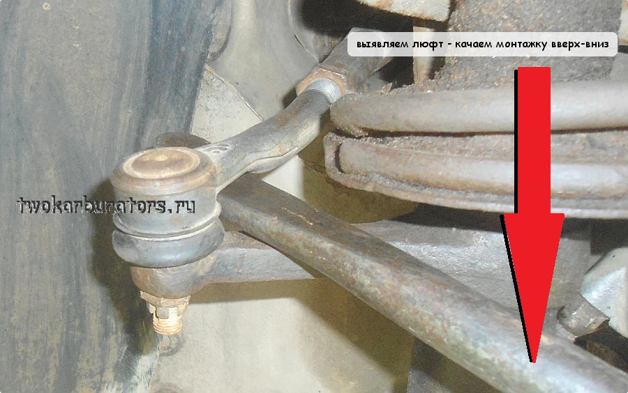 Проверяем люфт в рулевом наконечнике с помощью монтажки