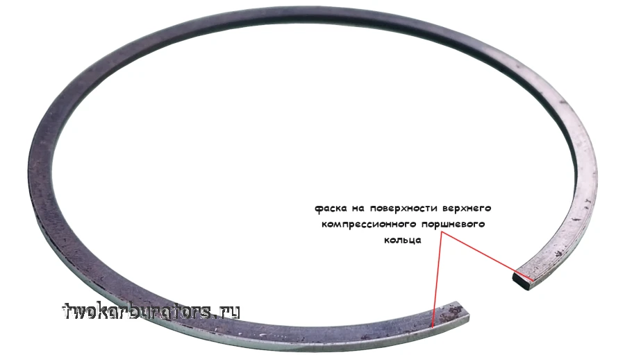 Помимо этого внешний профиль у верхних компрессионных колец может быть в виде несимметричной «бочки». Которая получается при наличии небольшой фаски на поверхности кольца.