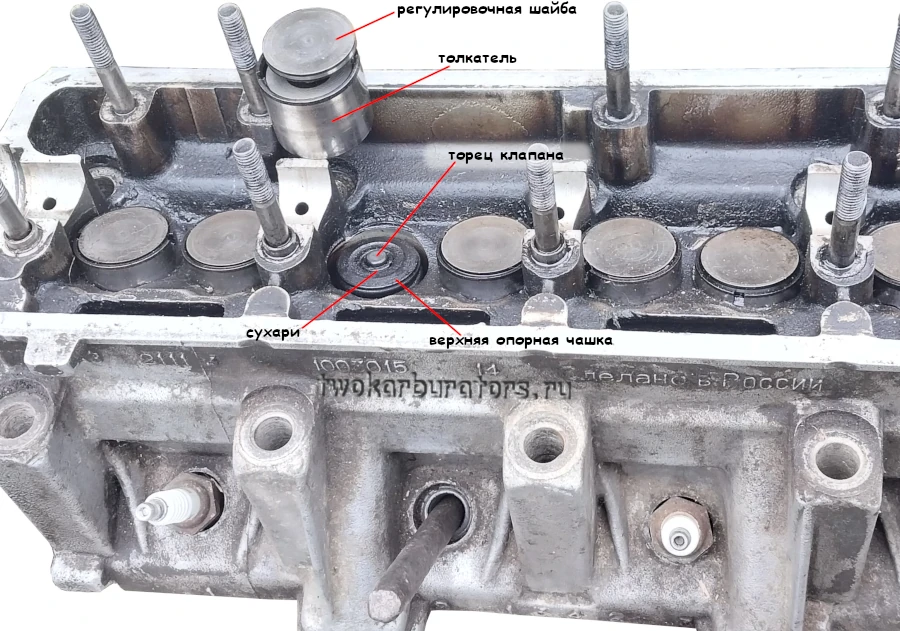 При снятии не путаем пружины, тарелки, регулировочные шайбы, толкатели для разных клапанов.