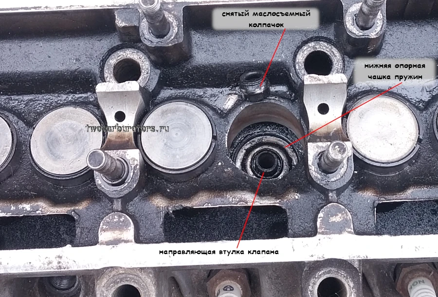 5. Снимаем маслосъемный колпачок с направляющей втулки.
