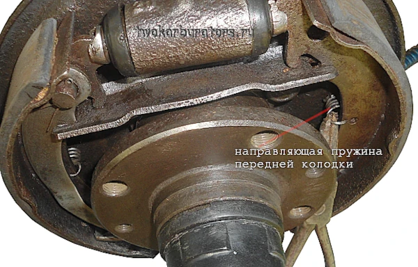 3. Отсоединяем направляющую пружину передней колодки.